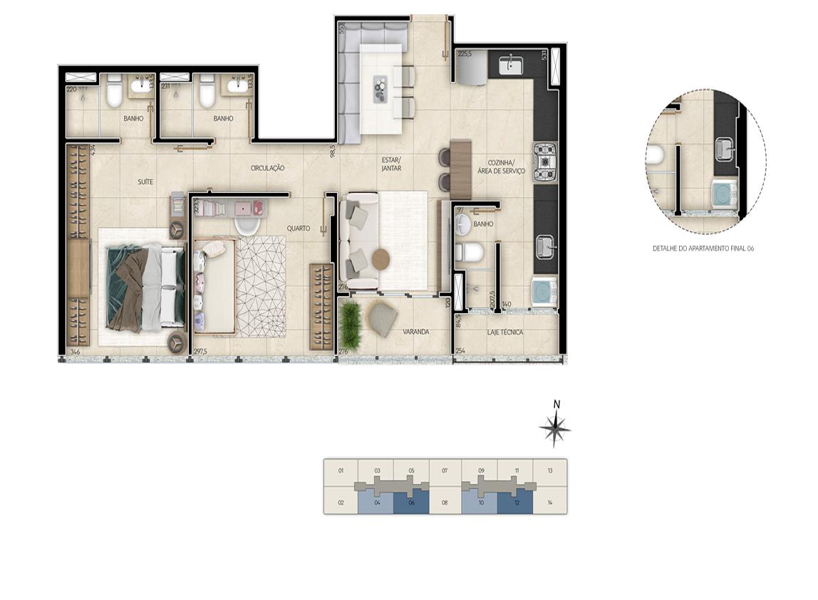 O Demartini foi projetado para você viver a sua vida com personalidade. Apartamentos de 2 quartos, sendo uma suíte com closet, cozinha americana, sala ampla com varanda, e o padrão construtivo que só a Soltec tem. As plantas vão de 76 a 180m², o que torna a sua escolha mais assertiva,