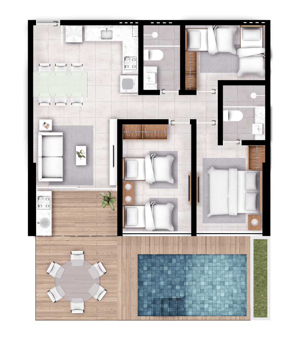 Recepção com concierge 24h ,Conceito Cashless, Serviços de Resort, Garagem privativa 100% coberta ,Vagas de garagem de visitante, Alameda Mundo Mágico, Complexo Aquático Beach, Club Empório Gourmet, Lounges ,Gourmet Academia, Espaço Funcional ,Espaço Coworking