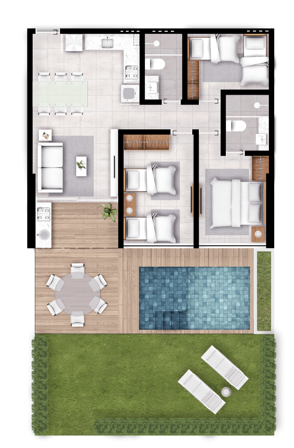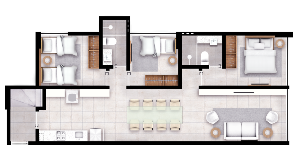 Espaço Kids Playground, Espaço de Jogos Teen ,Espaço Games Mini, Campo Gramado Beach Tênis Beach, Vôlei ,Dormitório para staff Lavanderia.