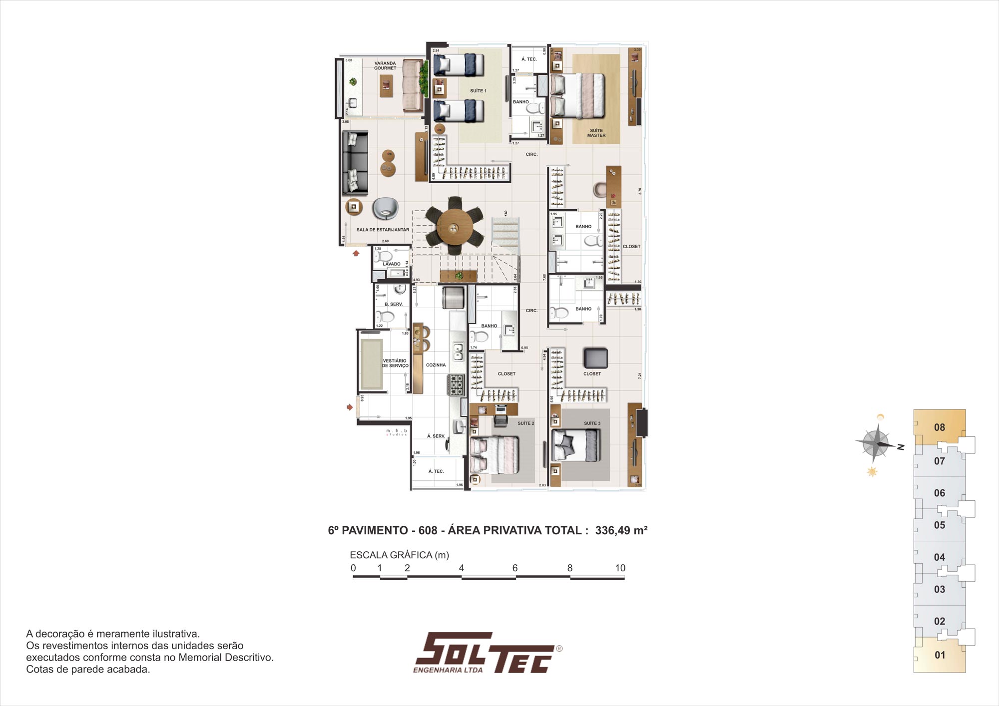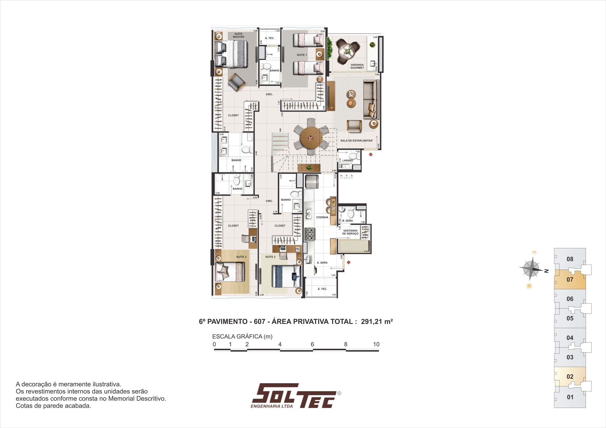 O Singular está pronto para morar e conta com apartamentos de 4 suítes, de 152 a 292m² e com 3 e 4 vagas de garagem. Sala e cozinha com ampla iluminação natural, janelas de correr que bloqueiam raios UV, dando mais conforto térmico e acústico. Falando em conforto acústico, as paredes e as lajes são maciças, com 23cm de espessura, proporcionando mais privacidade para a sua família.