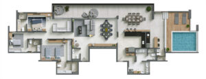 O Villa Jardins conta com apartamentos de 3 e 4 quartos de 111,51 m² a 319,50 m². Para um conforto ainda maior, as coberturas são essenciais para atender a sua família. Opções com 4 suítes de 278,71 m² ou 3 suítes">